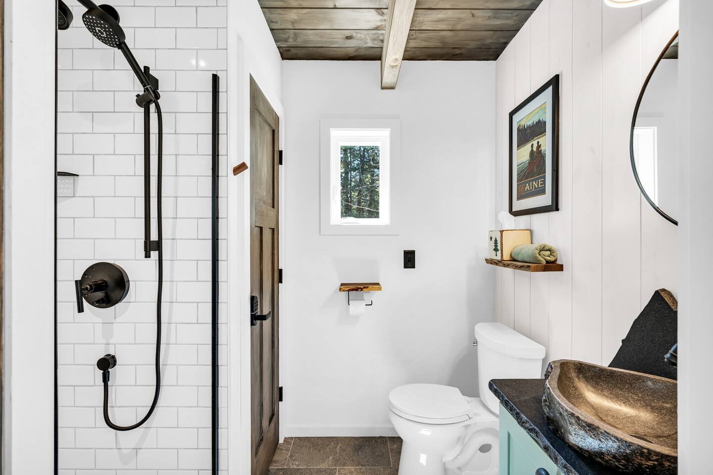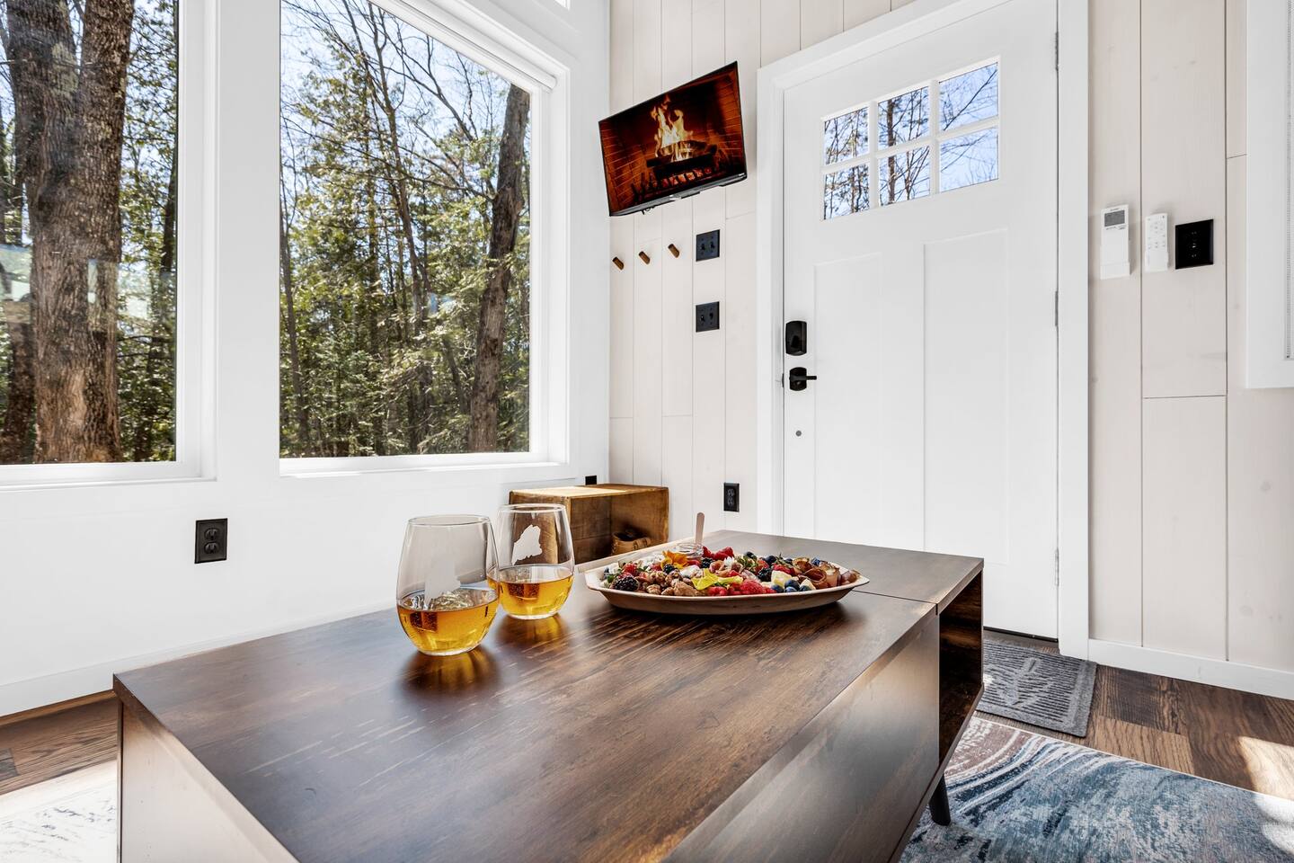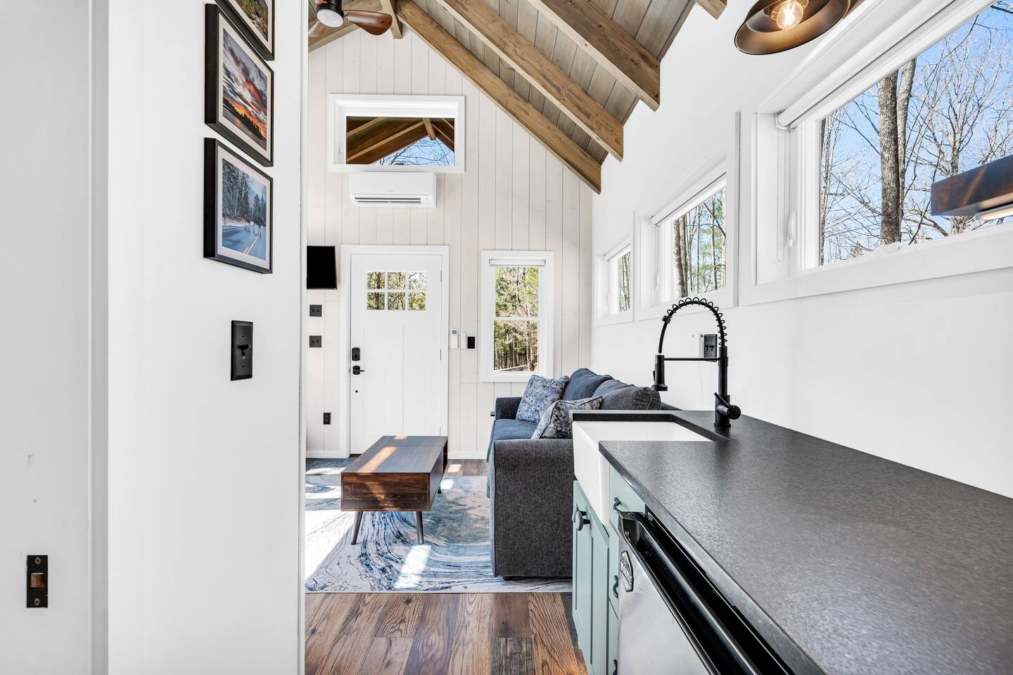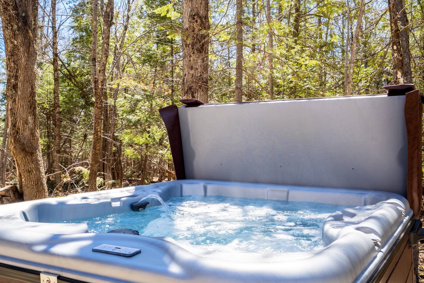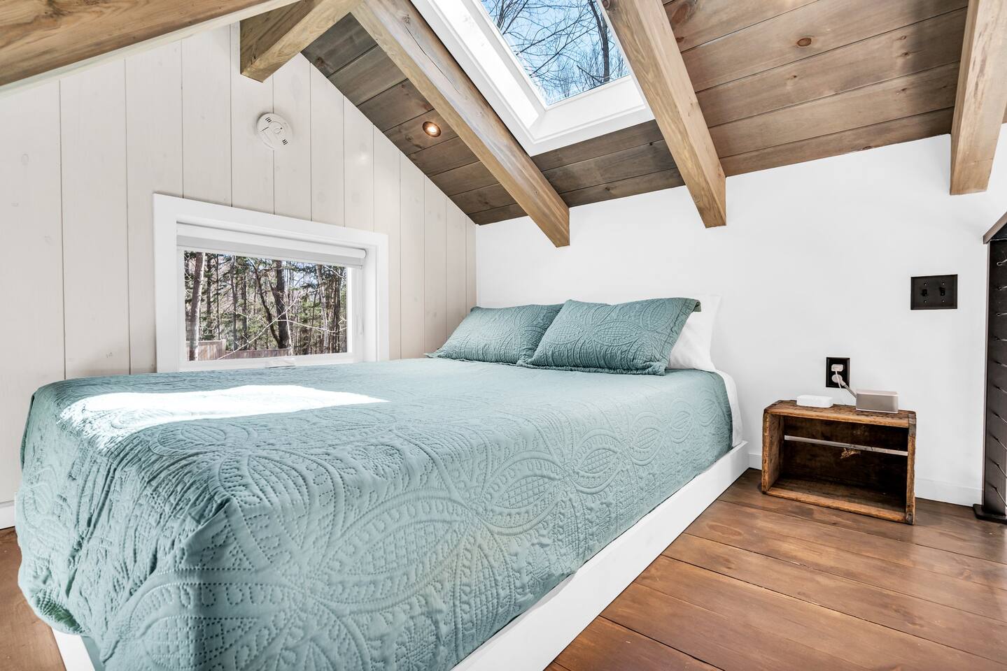 The space is perfectly designed to be small and cozy, but also have everything you need to both live and work comfortably. There is a loft with a queen-sized bed, as well as a pull-out couch in the living room area. *NOTE* This cabin was designed and built specifically for two people. There are two beds, so you are welcome to travel with four guests, but please note there is not a wall between the two beds (the loft is open to the living room), and the dining table only has two stools. *Tumbledown Mountain - 15 minutes *Mt. Blue State Park - 4 minutes *Farmington - 25 minutes *Rumford - 30 minutes *Sugarloaf Mountain - 1 hr *Saddleback Mountain - 45 minutes *Sunday River - 50 minutes KEY FEATURES: - hot tub - fully equipped kitchen - porch swing - large picture windows - fire pit - flat top Blackstone grill - outdoor twinkle lighting BEDROOM The loft area is accessed by a ladder that can be tucked away to create more space downstairs. On the night stand you will find a power station and sound machine. The queen bed sits below a skylight perfect for stargazing. BATHROOM The tiny home has just one full bathroom with all the conveniences of a full-size home. The locking pocket door provides privacy. Tile shower with glass door and shelves for your products. KITCHEN, DINING The small kitchen and 2-seater dining table offers all the conveniences of a full-size kitchen just shrunk down into a mini version to fit in the space perfectly. The kitchen will be fully stocked so you can cook all your own meals, and includes pots, pans, knives, utensils, and an array of different style coffee makers. The microwave-looking appliance is also an oven AND an air fryer. Some bad news…although the mini-fridge has a freezer it does NOT fit a pint of ice cream....plan your frozen desserts according! LIVING ROOM From the full-size couch, stream your favorite shows on the compact 32" HDTV. From this cozy spot, you feel like you are part of the forest that can be seen through the large picture windows. Floor-to-ceiling windows bring the stunning natural scenery indoors, fulfilling your longing to experience nature's beauty. OUTSIDE SPACE Step out onto the porch and hang out on the Amish build porch swing. Cook up all your favorite meals on the Blackstone flat top grill. Hop in the hot tub to rejuvenate your mind and body, you'll be surrounded by nature. Sit around the custom designed, welded fire pit while roasting marshmallows, reminiscing on old memories, and creating new ones. There is parking for 3 cars in the driveway. LOCATION While this area may feel like the middle of nowhere to most people, it is home to us. The tiny home is within 30 minutes of hospitals and groceries (Farmington & Rumford). And right in the middle of many outdoor activities. The location of the tiny home is right in historic downtown Weld. It sits just down the hill from the one road that passes through town and you may see and hear the few cars pass by while sitting around the fire.