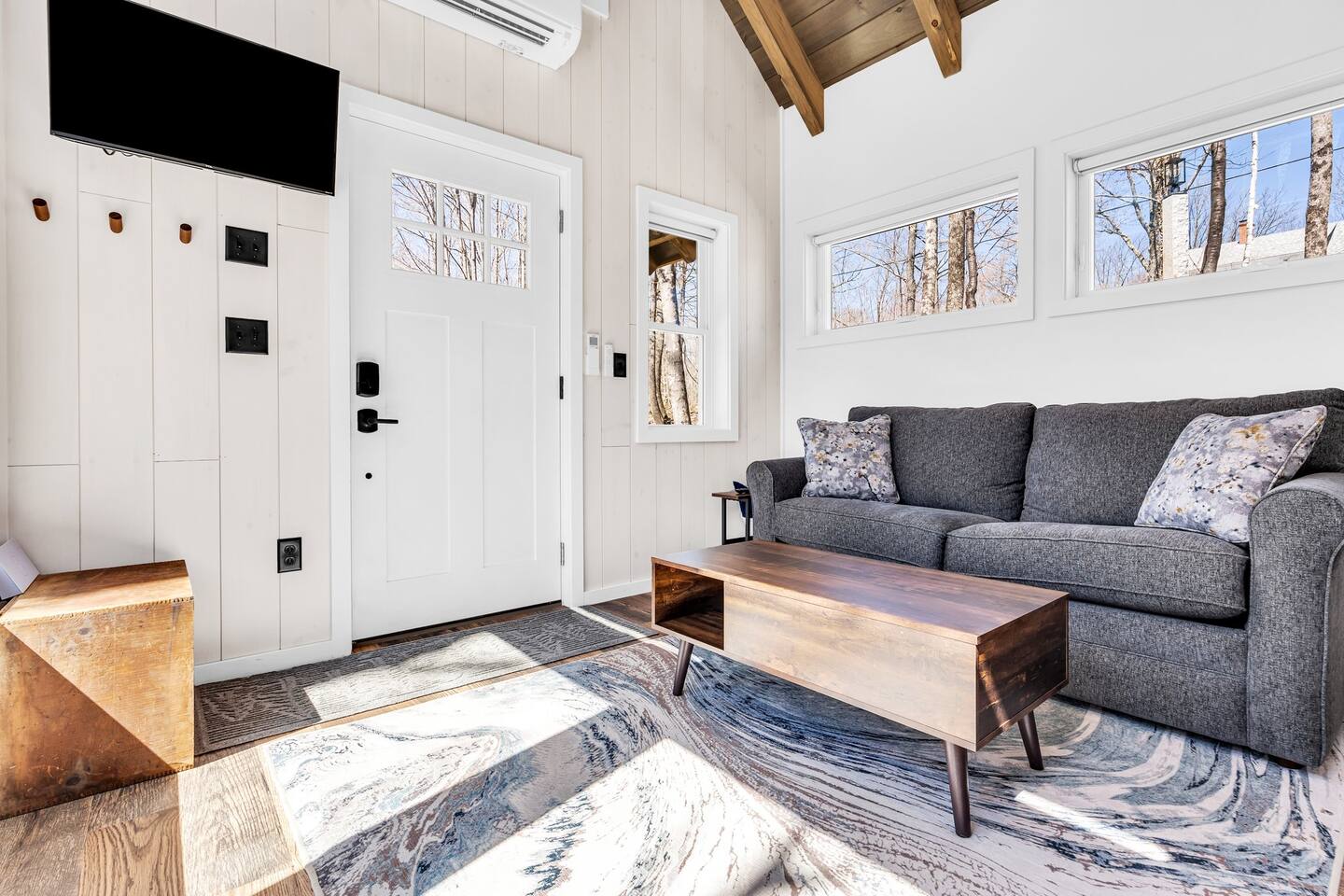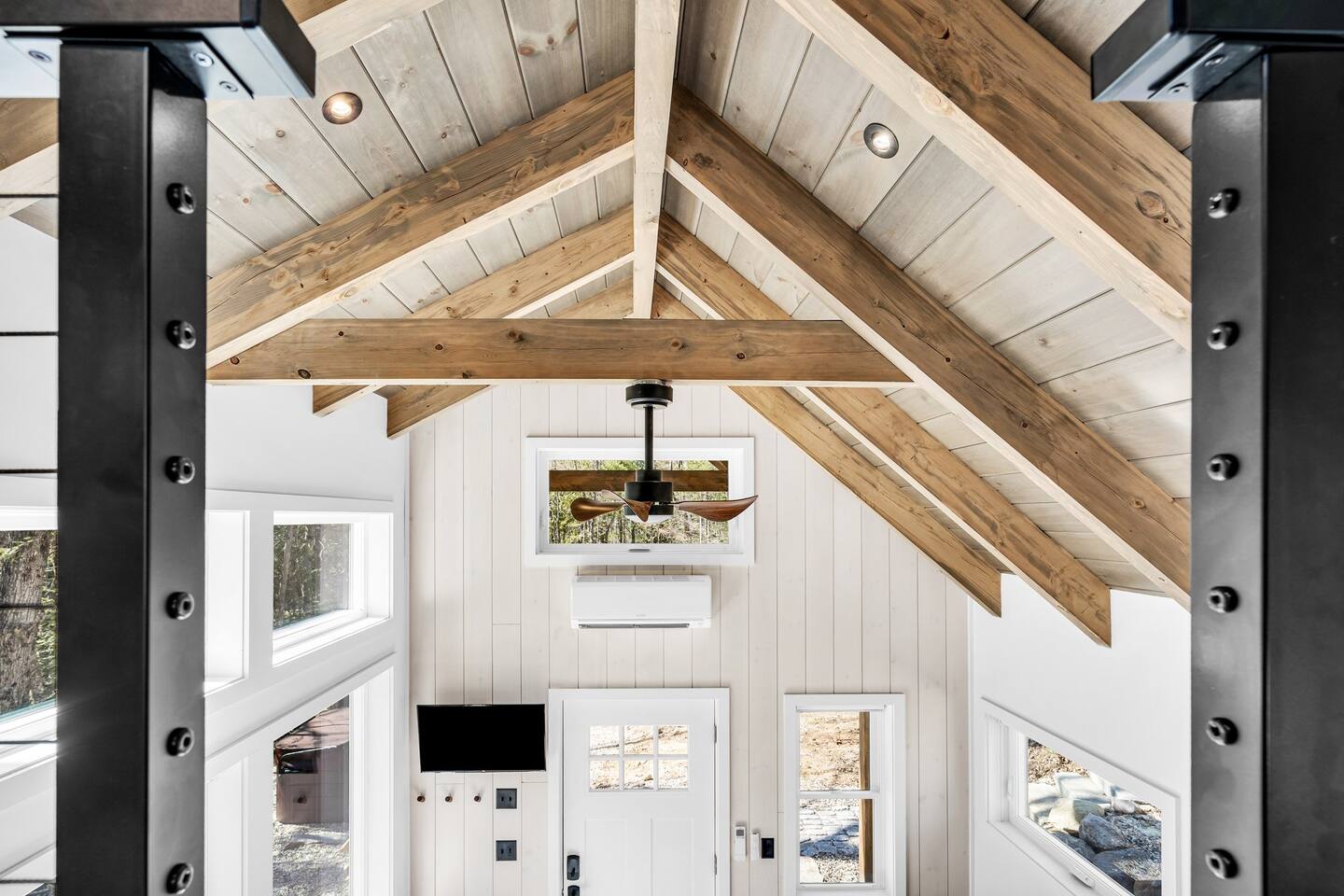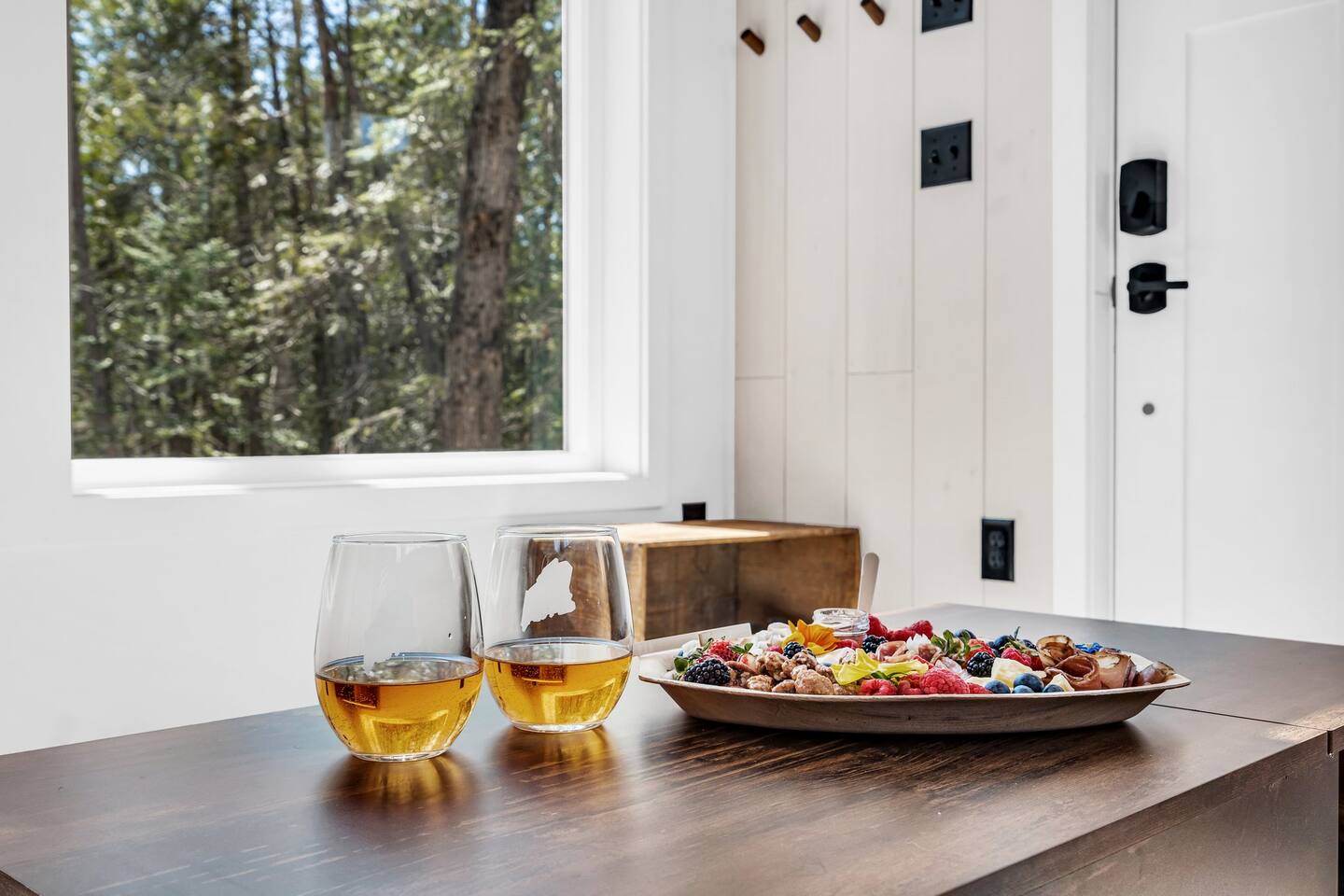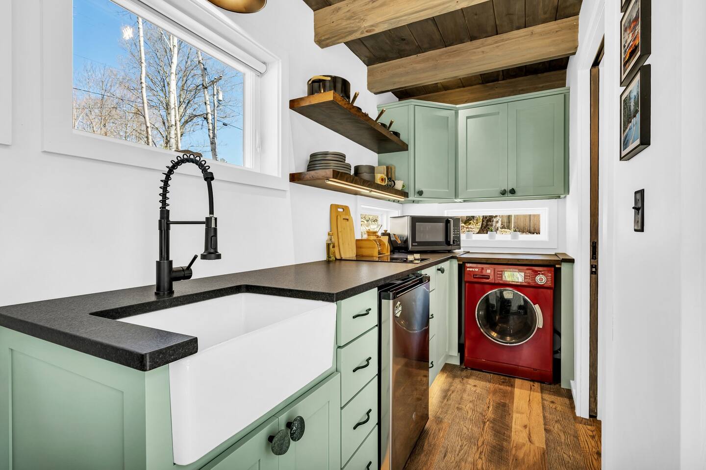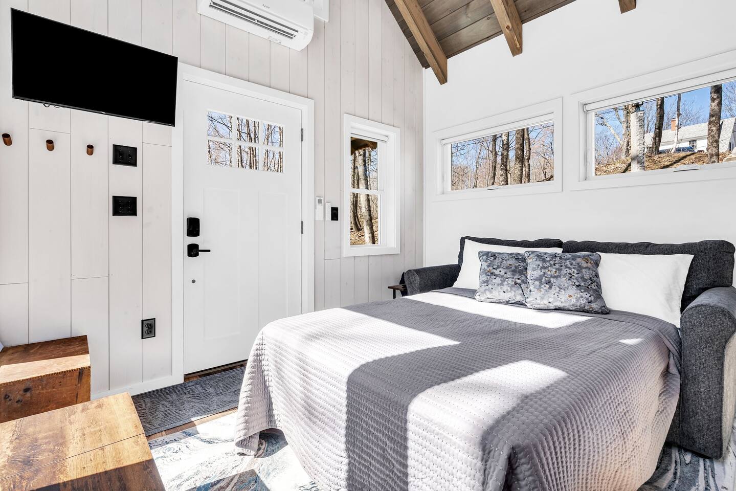The space is perfectly designed to be small and cozy, but also have everything you need to both live and work comfortably. There is a loft with a queen-sized bed, as well as a pull-out couch in the living room area. *NOTE* This cabin was designed and built specifically for two people. There are two beds, so you are welcome to travel with four guests, but please note there is not a wall between the two beds (the loft is open to the living room), and the dining table only has two stools. *Tumbledown Mountain - 15 minutes *Mt. Blue State Park - 4 minutes *Farmington - 25 minutes *Rumford - 30 minutes *Sugarloaf Mountain - 1 hr *Saddleback Mountain - 45 minutes *Sunday River - 50 minutes KEY FEATURES: - hot tub - fully equipped kitchen - porch swing - large picture windows - fire pit - flat top Blackstone grill - outdoor twinkle lighting BEDROOM The loft area is accessed by a ladder that can be tucked away to create more space downstairs. On the night stand you will find a power station and sound machine. The queen bed sits below a skylight perfect for stargazing. BATHROOM The tiny home has just one full bathroom with all the conveniences of a full-size home. The locking pocket door provides privacy. Tile shower with glass door and shelves for your products. KITCHEN, DINING The small kitchen and 2-seater dining table offers all the conveniences of a full-size kitchen just shrunk down into a mini version to fit in the space perfectly. The kitchen will be fully stocked so you can cook all your own meals, and includes pots, pans, knives, utensils, and an array of different style coffee makers. The microwave-looking appliance is also an oven AND an air fryer. Some bad news…although the mini-fridge has a freezer it does NOT fit a pint of ice cream....plan your frozen desserts according! LIVING ROOM From the full-size couch, stream your favorite shows on the compact 32" HDTV. From this cozy spot, you feel like you are part of the forest that can be seen through the large picture windows. Floor-to-ceiling windows bring the stunning natural scenery indoors, fulfilling your longing to experience nature's beauty. OUTSIDE SPACE Step out onto the porch and hang out on the Amish build porch swing. Cook up all your favorite meals on the Blackstone flat top grill. Hop in the hot tub to rejuvenate your mind and body, you'll be surrounded by nature. Sit around the custom designed, welded fire pit while roasting marshmallows, reminiscing on old memories, and creating new ones. There is parking for 3 cars in the driveway. LOCATION While this area may feel like the middle of nowhere to most people, it is home to us. The tiny home is within 30 minutes of hospitals and groceries (Farmington & Rumford). And right in the middle of many outdoor activities. The location of the tiny home is right in historic downtown Weld. It sits just down the hill from the one road that passes through town and you may see and hear the few cars pass by while sitting around the fire.
