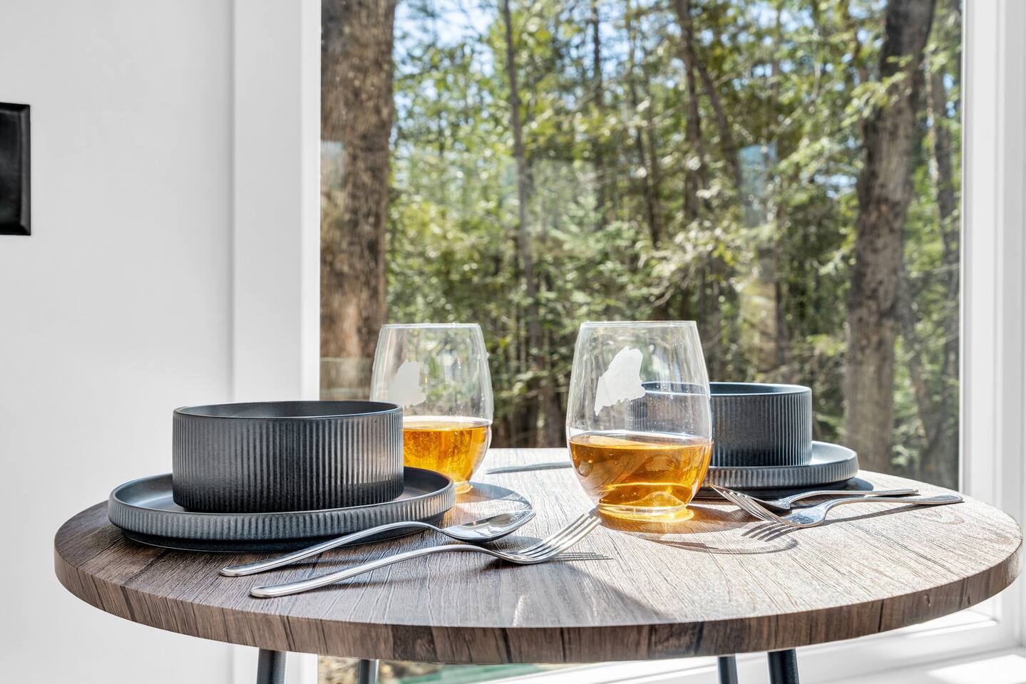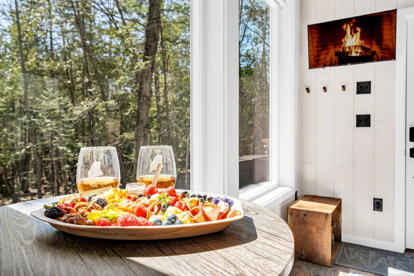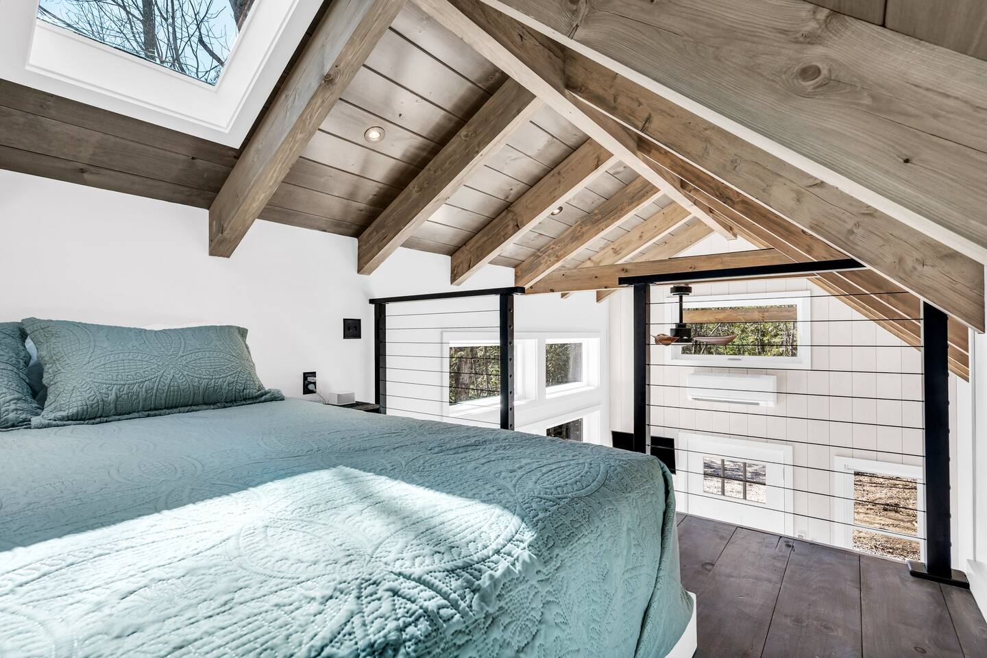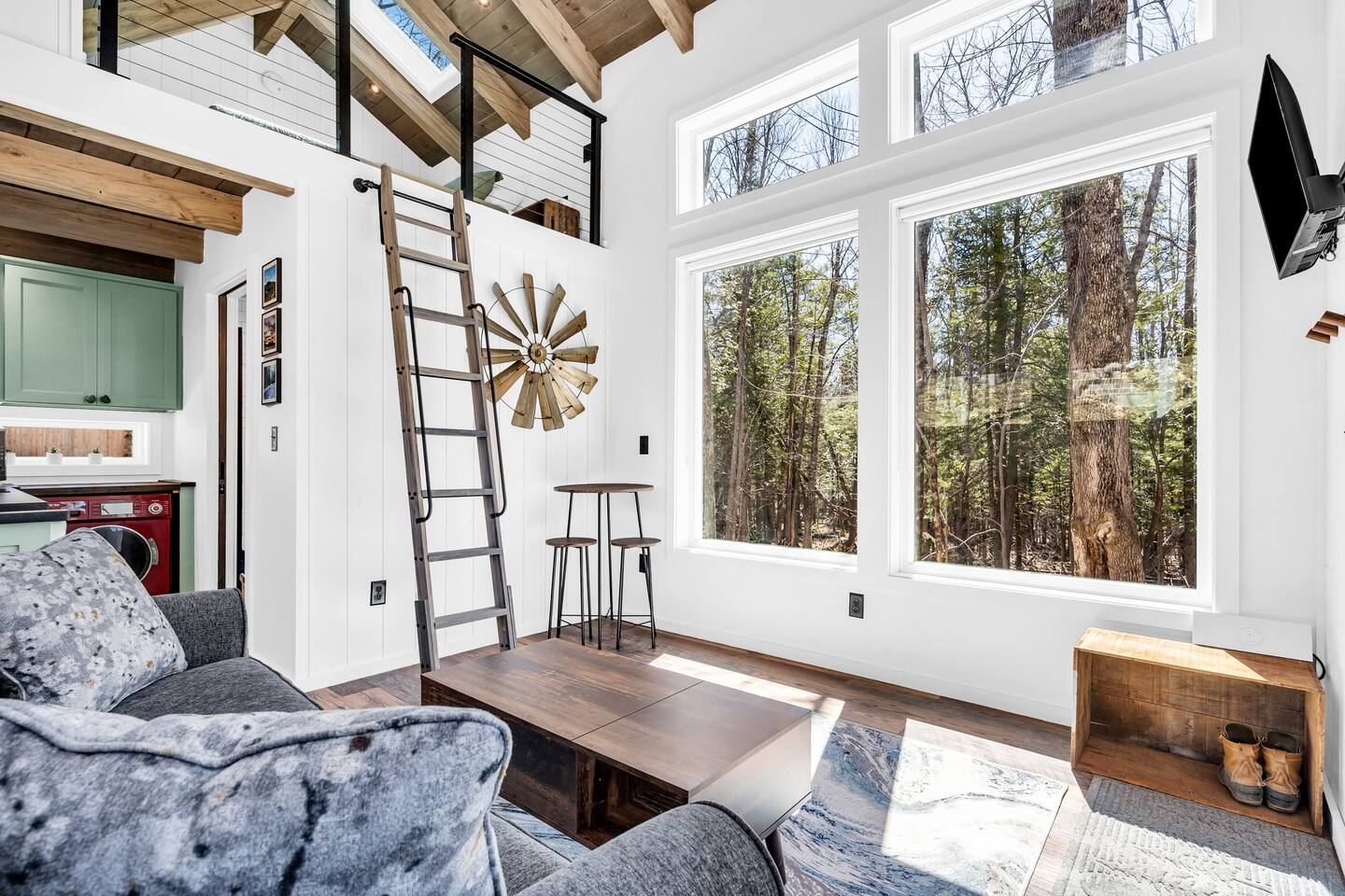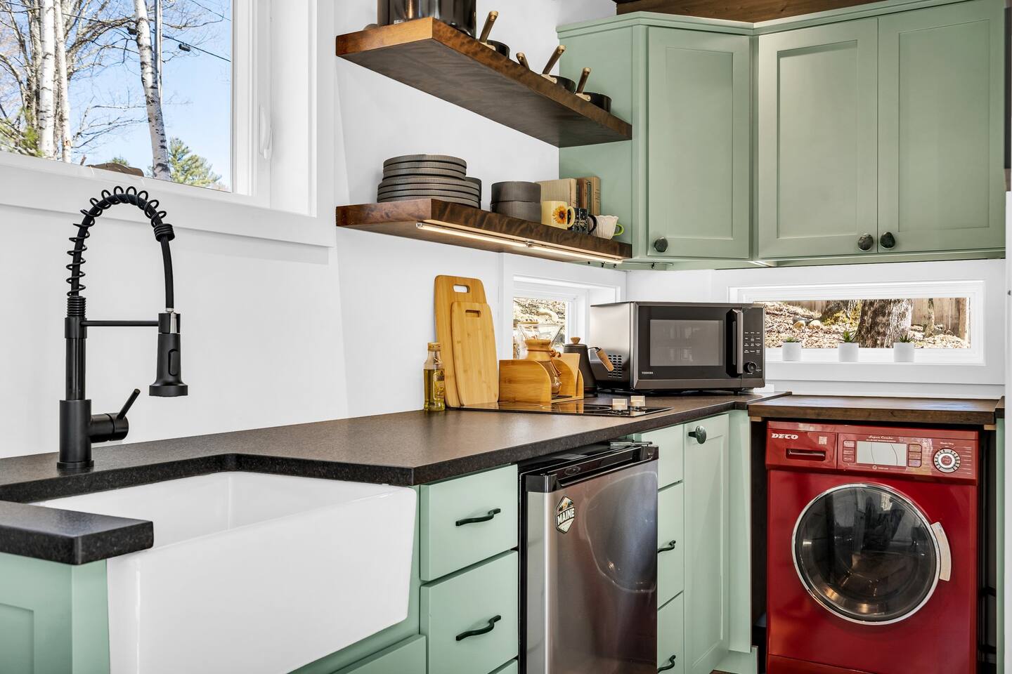 The space is perfectly designed to be small and cozy, but also have everything you need to both live and work comfortably. There is a loft with a queen-sized bed, as well as a pull-out couch in the living room area. *NOTE* This cabin was designed and built specifically for two people. There are two beds, so you are welcome to travel with four guests, but please note there is not a wall between the two beds (the loft is open to the living room), and the dining table only has two stools. *Tumbledown Mountain - 15 minutes *Mt. Blue State Park - 4 minutes *Farmington - 25 minutes *Rumford - 30 minutes *Sugarloaf Mountain - 1 hr *Saddleback Mountain - 45 minutes *Sunday River - 50 minutes KEY FEATURES: - hot tub - fully equipped kitchen - porch swing - large picture windows - fire pit - flat top Blackstone grill - outdoor twinkle lighting BEDROOM The loft area is accessed by a ladder that can be tucked away to create more space downstairs. On the night stand you will find a power station and sound machine. The queen bed sits below a skylight perfect for stargazing. BATHROOM The tiny home has just one full bathroom with all the conveniences of a full-size home. The locking pocket door provides privacy. Tile shower with glass door and shelves for your products. KITCHEN, DINING The small kitchen and 2-seater dining table offers all the conveniences of a full-size kitchen just shrunk down into a mini version to fit in the space perfectly. The kitchen will be fully stocked so you can cook all your own meals, and includes pots, pans, knives, utensils, and an array of different style coffee makers. The microwave-looking appliance is also an oven AND an air fryer. Some bad news…although the mini-fridge has a freezer it does NOT fit a pint of ice cream....plan your frozen desserts according! LIVING ROOM From the full-size couch, stream your favorite shows on the compact 32" HDTV. From this cozy spot, you feel like you are part of the forest that can be seen through the large picture windows. Floor-to-ceiling windows bring the stunning natural scenery indoors, fulfilling your longing to experience nature's beauty. OUTSIDE SPACE Step out onto the porch and hang out on the Amish build porch swing. Cook up all your favorite meals on the Blackstone flat top grill. Hop in the hot tub to rejuvenate your mind and body, you'll be surrounded by nature. Sit around the custom designed, welded fire pit while roasting marshmallows, reminiscing on old memories, and creating new ones. There is parking for 3 cars in the driveway. LOCATION While this area may feel like the middle of nowhere to most people, it is home to us. The tiny home is within 30 minutes of hospitals and groceries (Farmington & Rumford). And right in the middle of many outdoor activities. The location of the tiny home is right in historic downtown Weld. It sits just down the hill from the one road that passes through town and you may see and hear the few cars pass by while sitting around the fire.